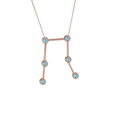 Gemini Kolye - Akuamarin 18 ayar rose altın kolye (40 cm rose altın rolo zincir)