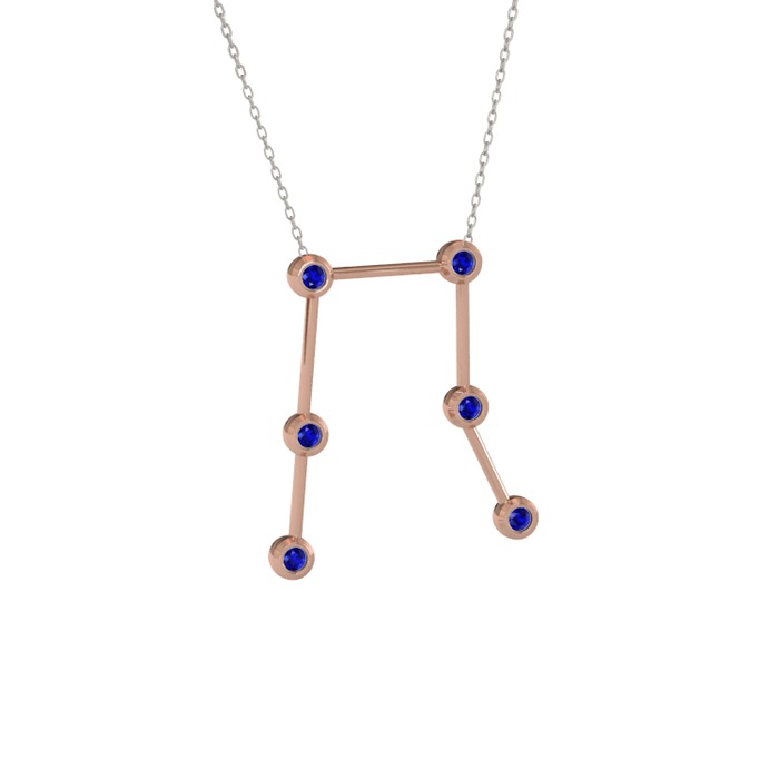 Lab safir 14 ayar rose altın kolye (40 cm gümüş rolo zincir)