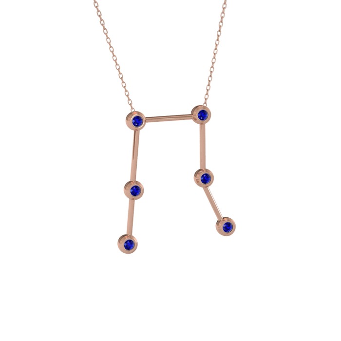 Lab safir 18 ayar rose altın kolye (40 cm rose altın rolo zincir)