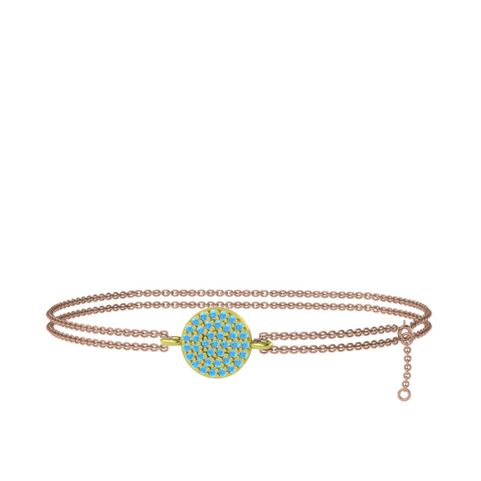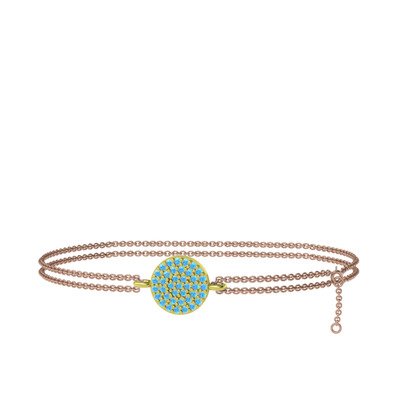 Akuamarin 925 ayar altın kaplama gümüş bilezik (40 cm rose altın rolo zincir)
