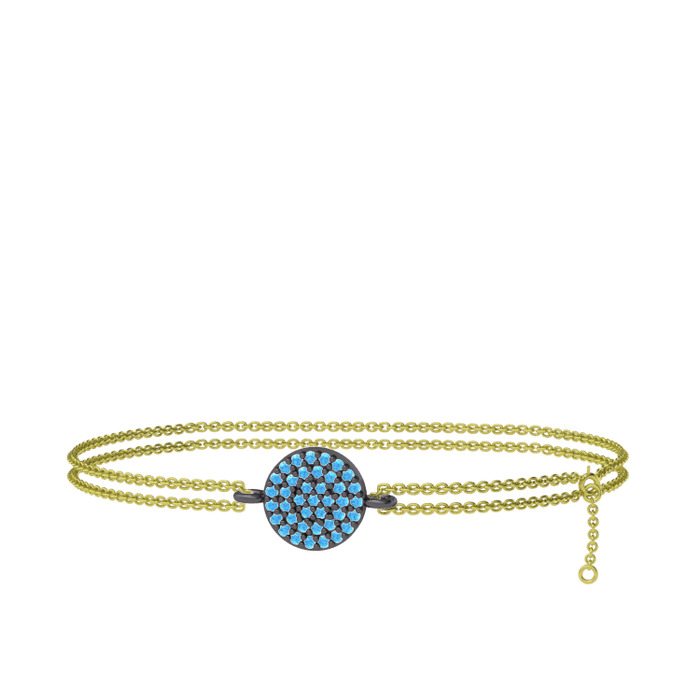 Akuamarin 925 ayar siyah rodyum kaplama gümüş bilezik (40 cm altın rolo zincir)