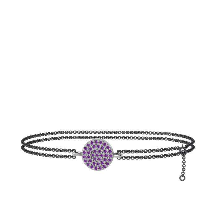 Ametist 14 ayar beyaz altın bilezik (40 cm gümüş rolo zincir)