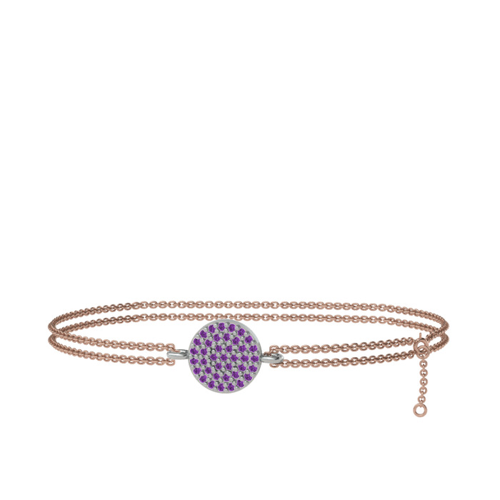 Ametist 8 ayar beyaz altın bilezik (40 cm rose altın rolo zincir)