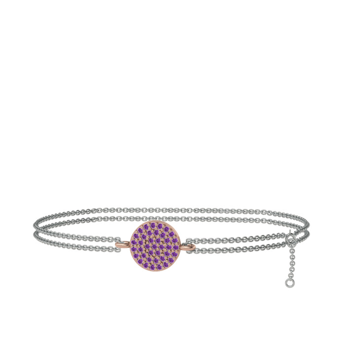 Ametist 8 ayar rose altın bilezik (40 cm gümüş rolo zincir)