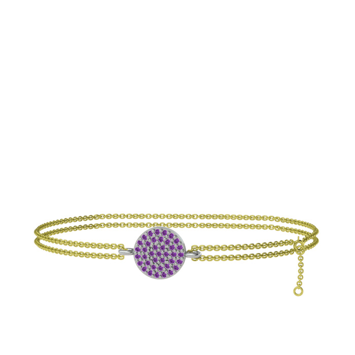 Ametist 925 ayar gümüş bilezik (40 cm altın rolo zincir)