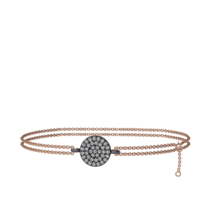 Beyaz zirkon 925 ayar siyah rodyum kaplama gümüş bilezik (40 cm rose altın rolo zincir)