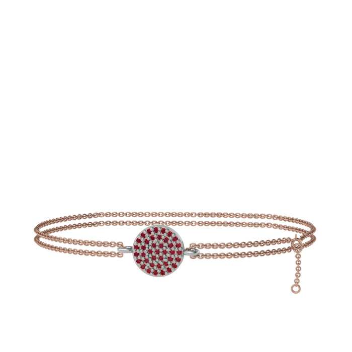 Garnet 18 ayar beyaz altın bilezik (40 cm rose altın rolo zincir)