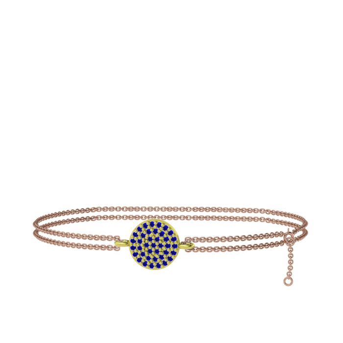 Lab safir 18 ayar altın bilezik (40 cm rose altın rolo zincir)