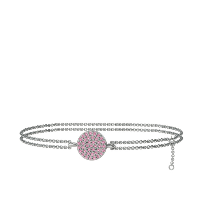 Pembe kuvars 14 ayar beyaz altın bilezik (40 cm beyaz altın rolo zincir)