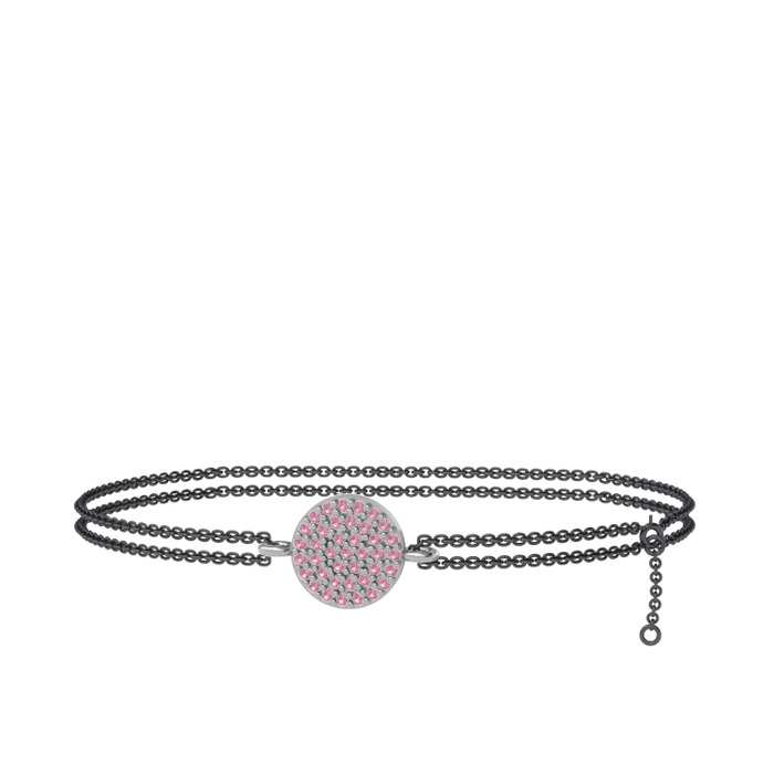 Pembe kuvars 18 ayar beyaz altın bilezik (40 cm gümüş rolo zincir)
