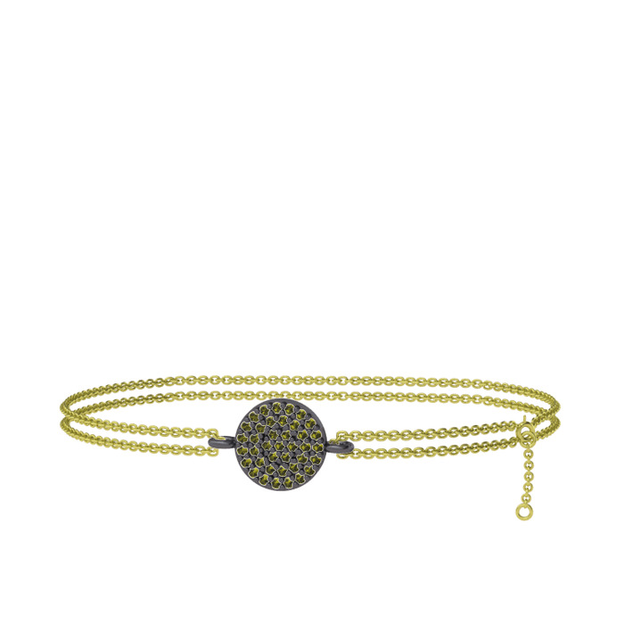 Peridot 925 ayar siyah rodyum kaplama gümüş bilezik (40 cm altın rolo zincir)