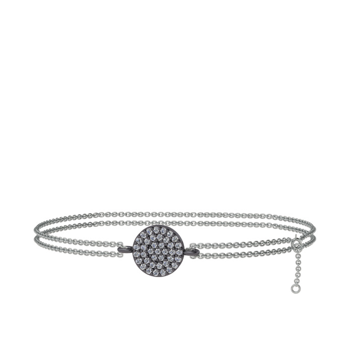 Pırlanta 925 ayar siyah rodyum kaplama gümüş bilezik (0.312 karat, 40 cm beyaz altın rolo zincir)