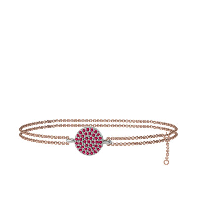 Rodolit garnet 925 ayar gümüş bilezik (40 cm rose altın rolo zincir)