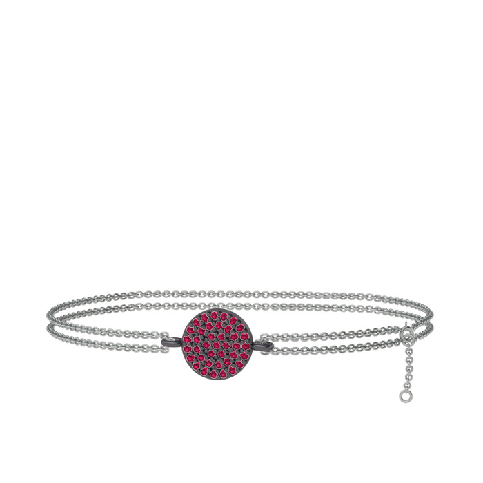Rodolit garnet 925 ayar siyah rodyum kaplama gümüş bilezik (40 cm beyaz altın rolo zincir)
