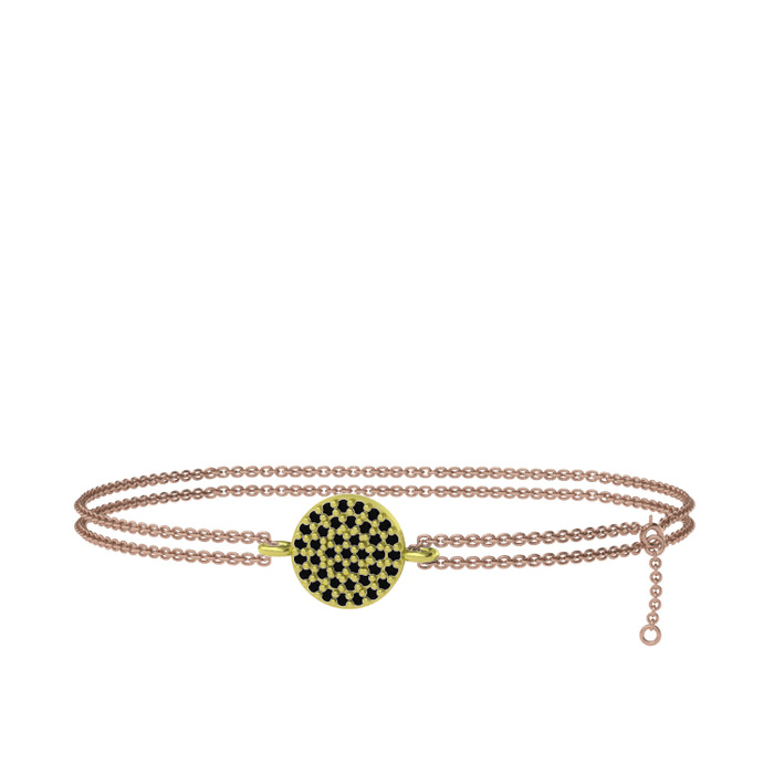 Siyah zirkon 8 ayar altın bilezik (40 cm rose altın rolo zincir)