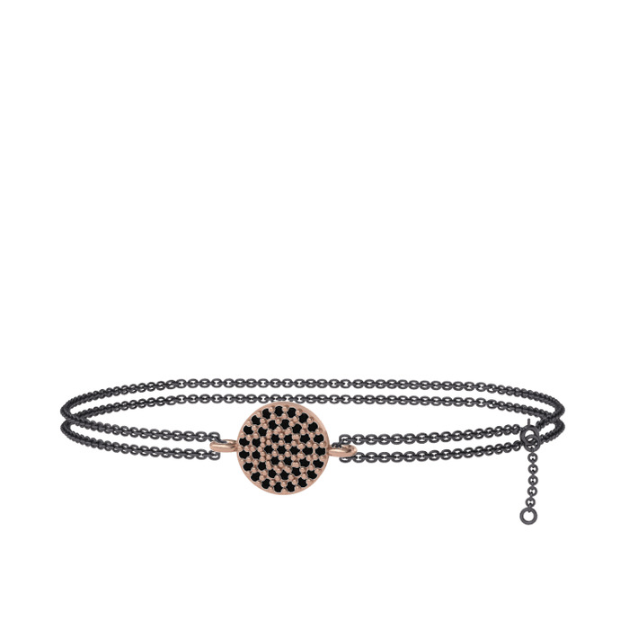 Siyah zirkon 8 ayar rose altın bilezik (40 cm gümüş rolo zincir)