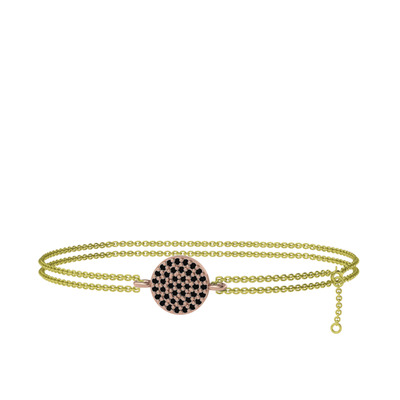Siyah zirkon 925 ayar rose altın kaplama gümüş bilezik (40 cm altın rolo zincir)