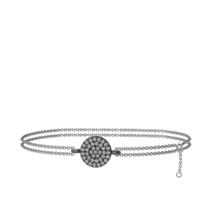 Swarovski 925 ayar siyah rodyum kaplama gümüş bilezik (40 cm beyaz altın rolo zincir)