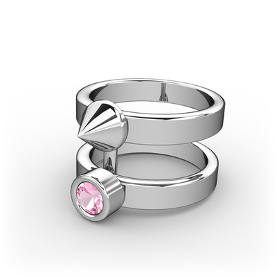 Pembe kuvars 14 ayar beyaz altın yüzük