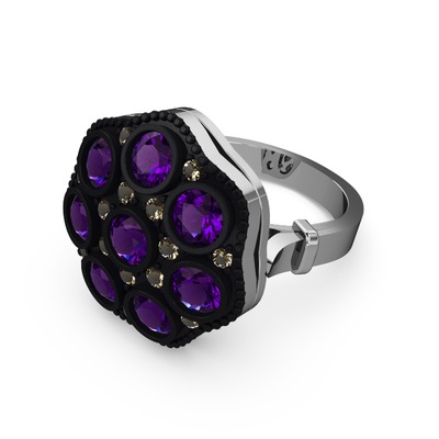 Ametist ve dumanlı kuvars 8 ayar beyaz altın yüzük