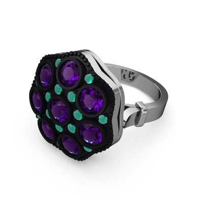 Ametist ve kök zümrüt 925 ayar gümüş yüzük