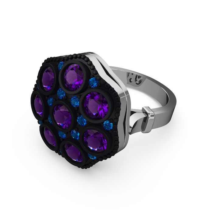 Ametist ve lab safir 14 ayar beyaz altın yüzük