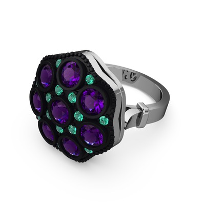 Ametist ve yeşil kuvars 14 ayar beyaz altın yüzük