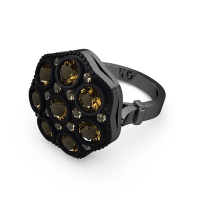 Dumanlı kuvars 925 ayar siyah rodyum kaplama gümüş yüzük