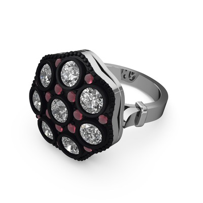 Elmas ve kök yakut 14 ayar beyaz altın yüzük (1.68 karat)