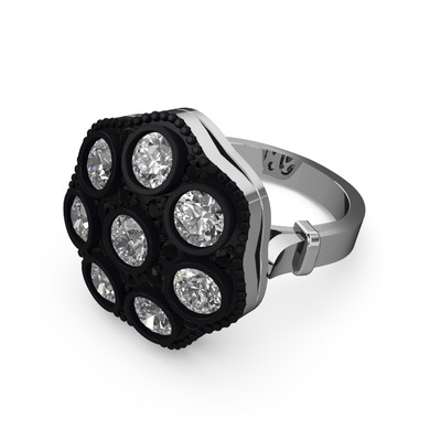 Elmas ve siyah zirkon 18 ayar beyaz altın yüzük (1.68 karat)