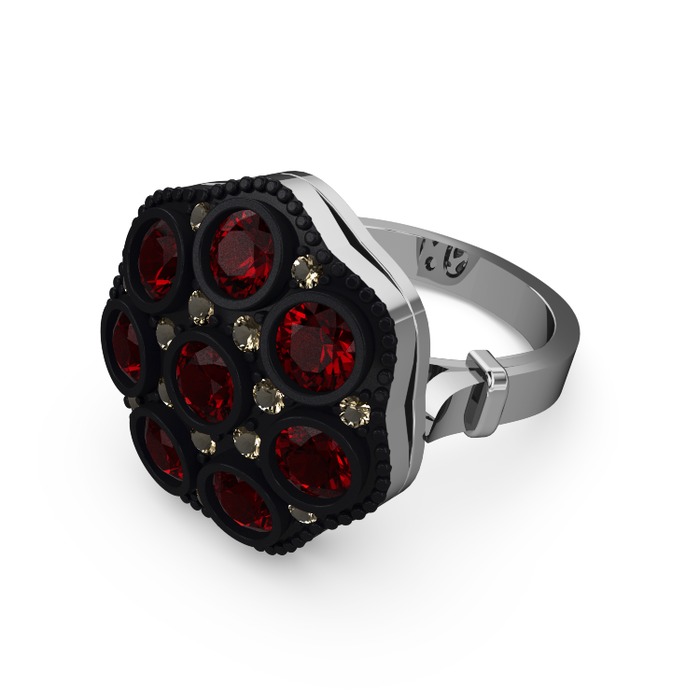 Garnet ve dumanlı kuvars 925 ayar gümüş yüzük