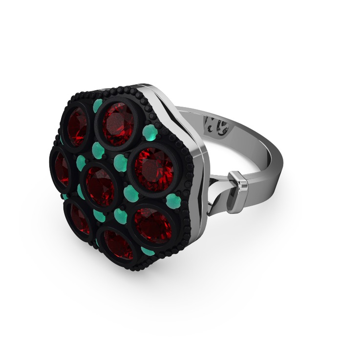 Garnet ve kök zümrüt 8 ayar beyaz altın yüzük