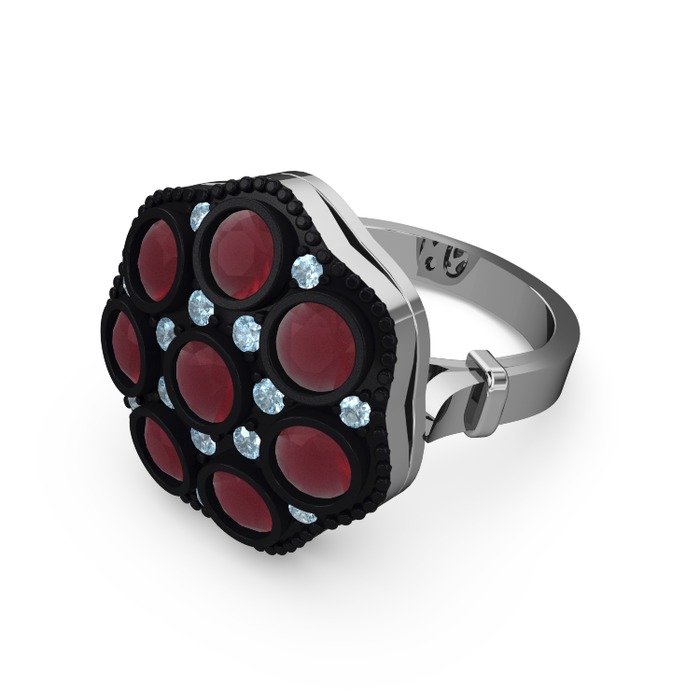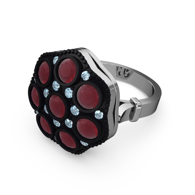 Kök yakut ve akuamarin 18 ayar beyaz altın yüzük