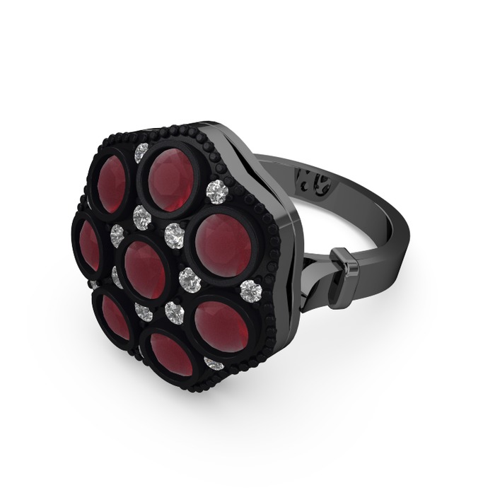 Kök yakut ve pırlanta 925 ayar siyah rodyum kaplama gümüş yüzük (0.3 karat)