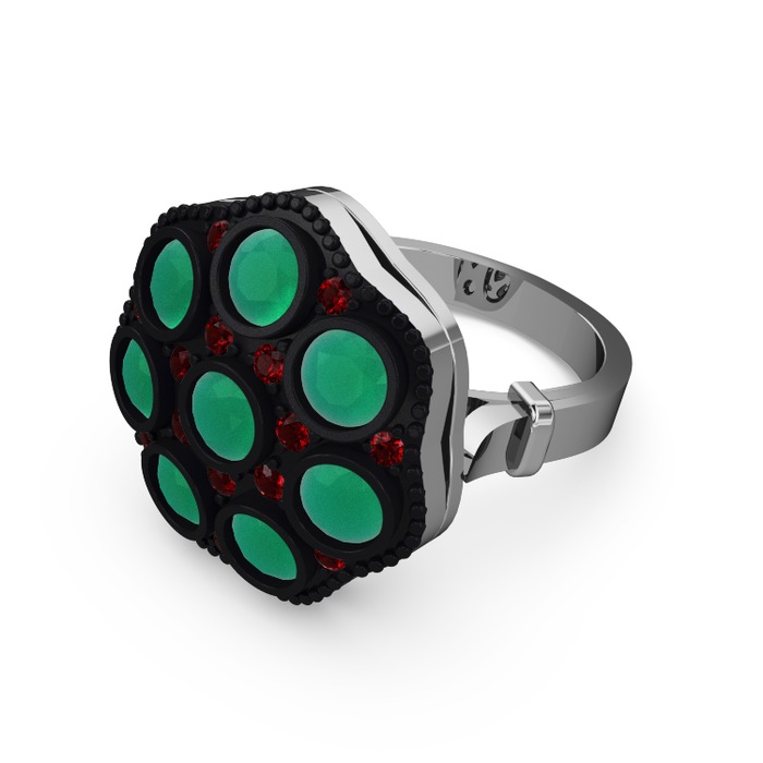 Kök zümrüt ve garnet 14 ayar beyaz altın yüzük