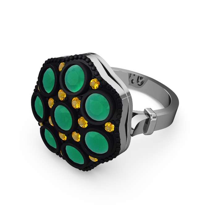 Kök zümrüt ve sitrin 18 ayar beyaz altın yüzük