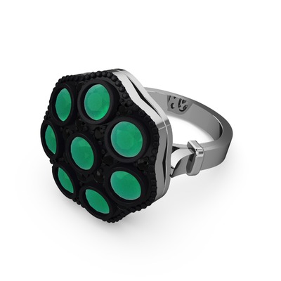Kök zümrüt ve siyah zirkon 14 ayar beyaz altın yüzük