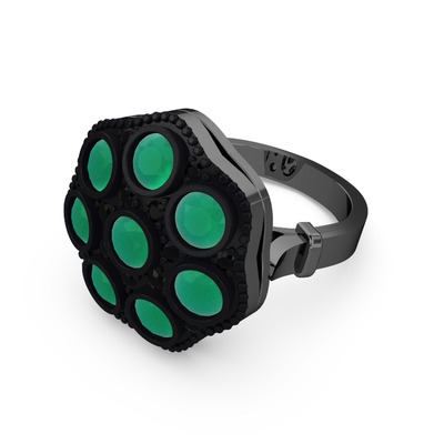 Kök zümrüt ve siyah zirkon 925 ayar siyah rodyum kaplama gümüş yüzük