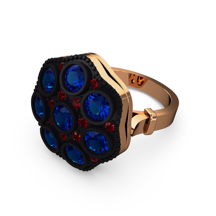 Lab safir ve garnet 925 ayar rose altın kaplama gümüş yüzük