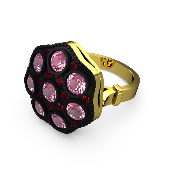 Pembe kuvars ve garnet 18 ayar altın yüzük