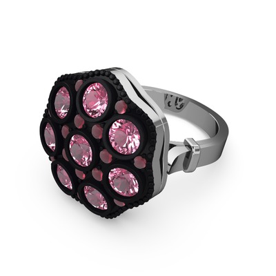 Pembe kuvars ve kök yakut 14 ayar beyaz altın yüzük