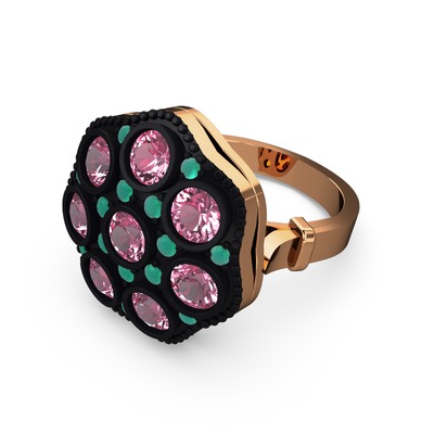 Pembe kuvars ve kök zümrüt 8 ayar rose altın yüzük