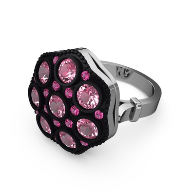Pembe kuvars ve rodolit garnet 18 ayar beyaz altın yüzük