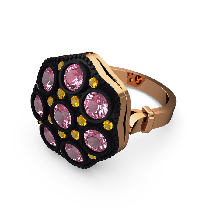 Pembe kuvars ve sitrin 18 ayar rose altın yüzük