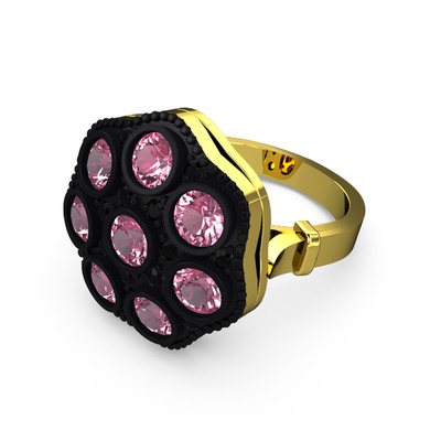 Pembe kuvars ve siyah zirkon 8 ayar altın yüzük