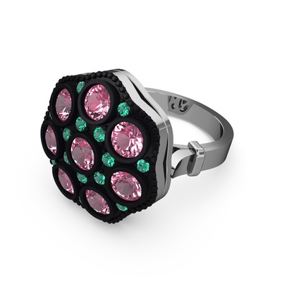 Pembe kuvars ve yeşil kuvars 925 ayar gümüş yüzük