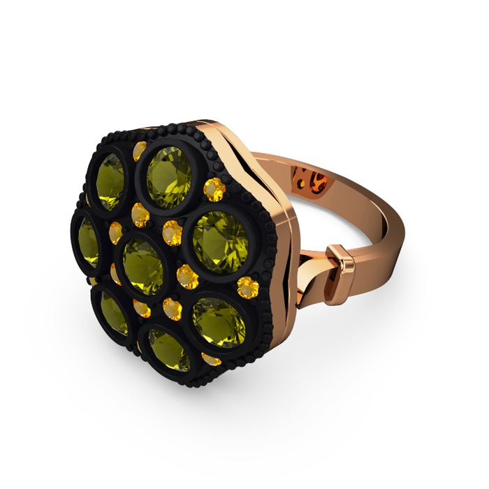 Peridot ve sitrin 925 ayar rose altın kaplama gümüş yüzük