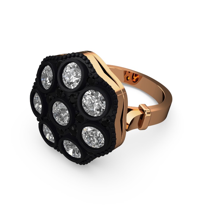 Pırlanta ve siyah zirkon 925 ayar rose altın kaplama gümüş yüzük (1.68 karat)