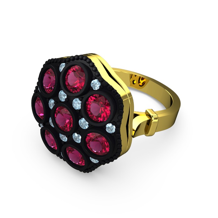 Rodolit garnet ve akuamarin 18 ayar altın yüzük