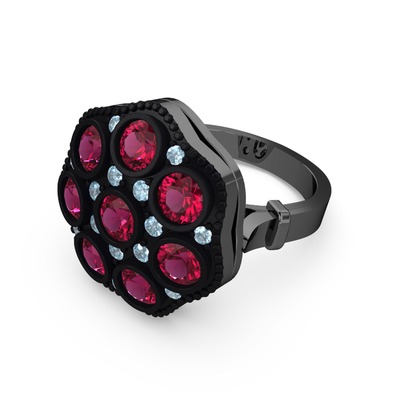 Rodolit garnet ve akuamarin 925 ayar siyah rodyum kaplama gümüş yüzük